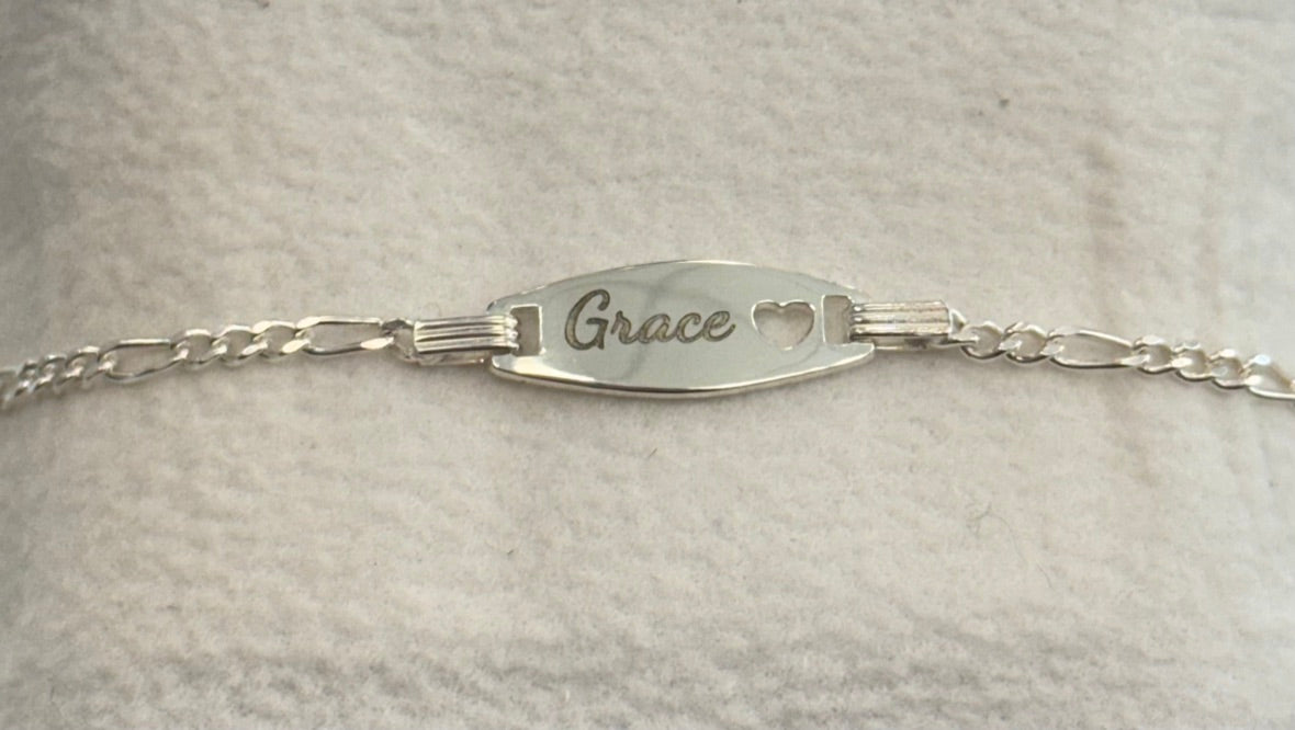 Sterling Silver Childrens Heart ID Bracelet